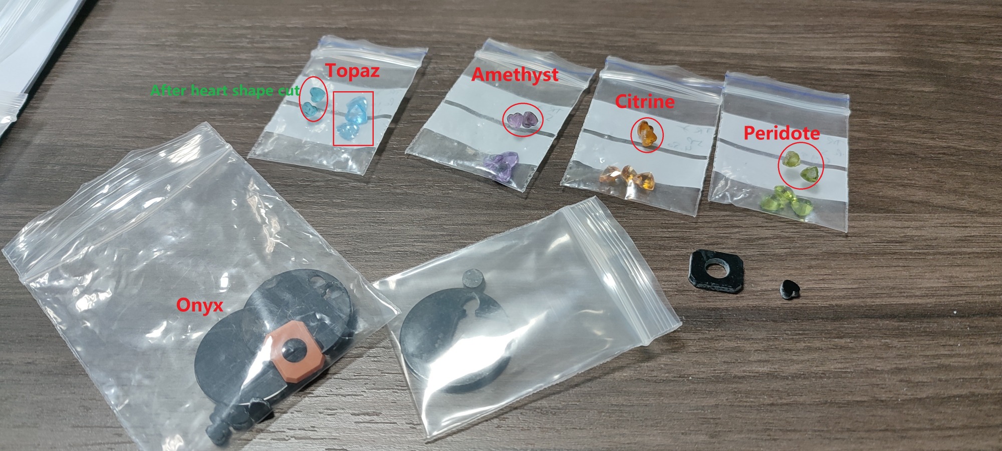 Tourmaline, Topaz, Amethyst, Citrine, Peridote and Onyx